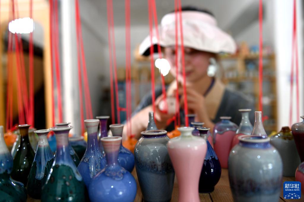 7月11日,游客在貴州省遵義市播州區楓香鎮花茂村土陶製作技藝館選購土陶。