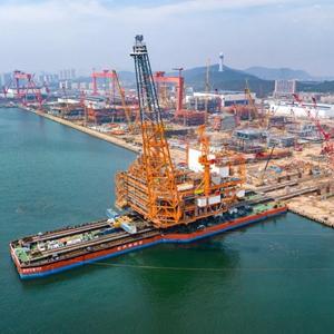 渤海首個千億方大氣田一期項目中心平台在青島裝船
