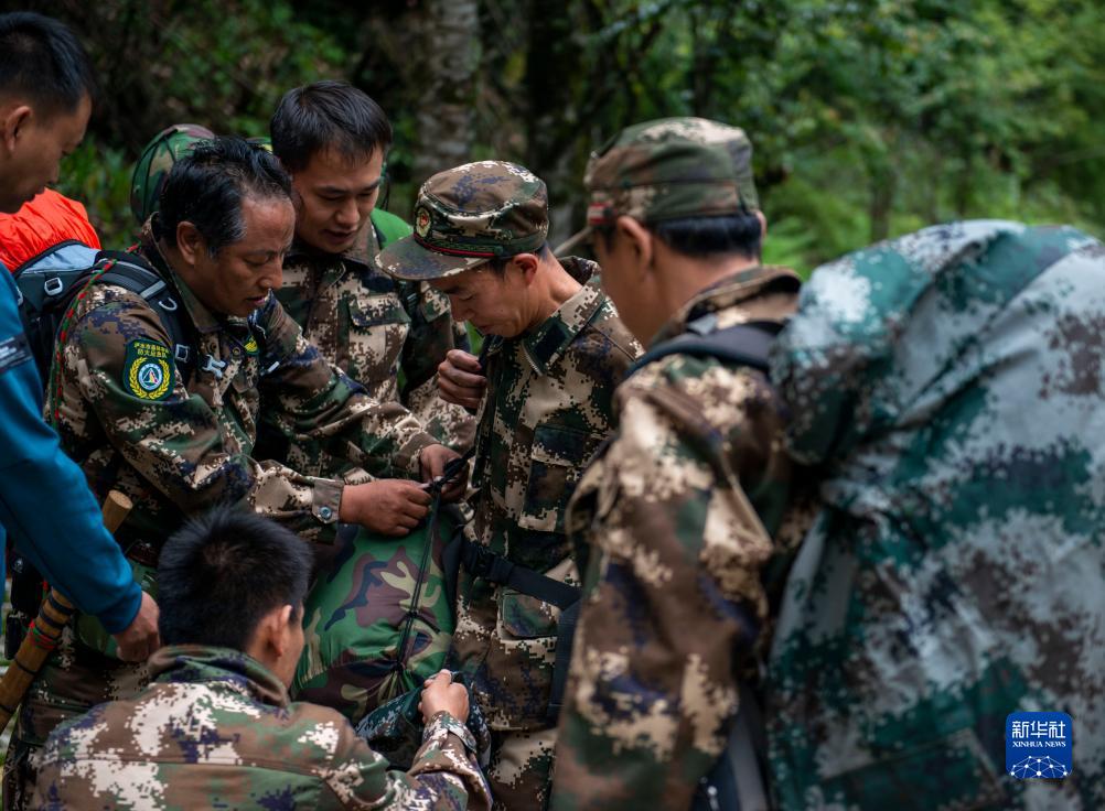 7月8日,在高黎貢山國家級自然保護區,巡護隊員在進山前整理背包。新華社記者 徐嘉懿 攝