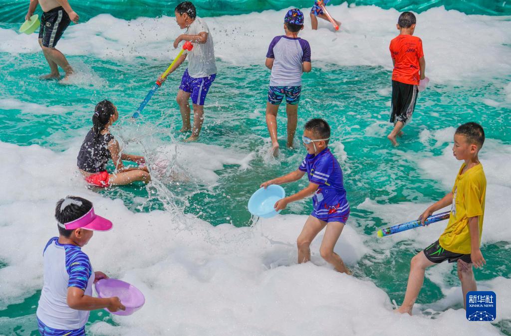 當日是入伏第一天,人們來到海邊、泳池和水上樂園戲水消暑,暢享清涼。