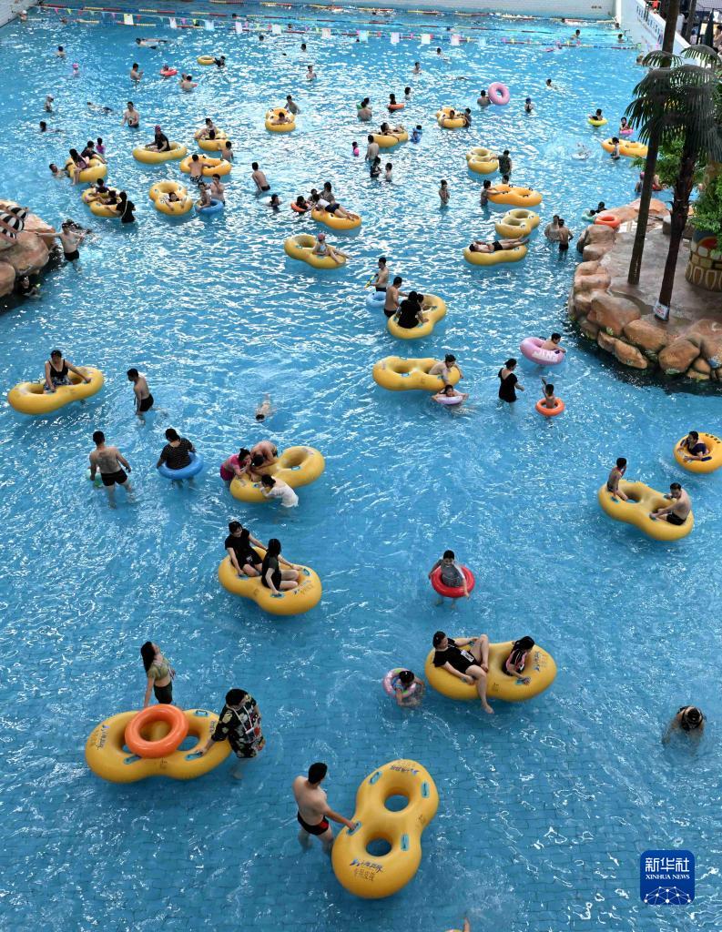 當日是入伏第一天,人們來到海邊、泳池和水上樂園戲水消暑,暢享清涼。