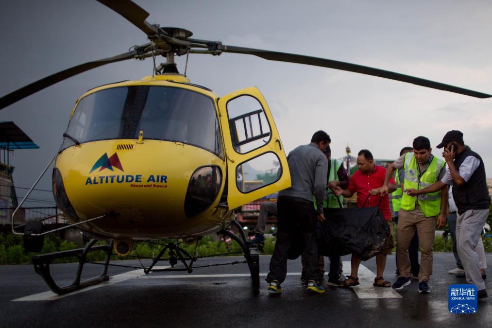 7月11日,載有墜機事件遇難者遺體的直升機抵達尼泊爾加德滿都。