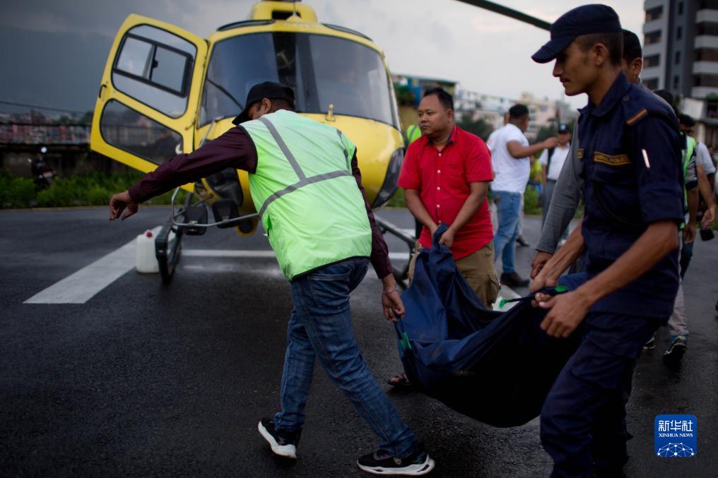 7月11日,載有墜機事件遇難者遺體的直升機抵達尼泊爾加德滿都。