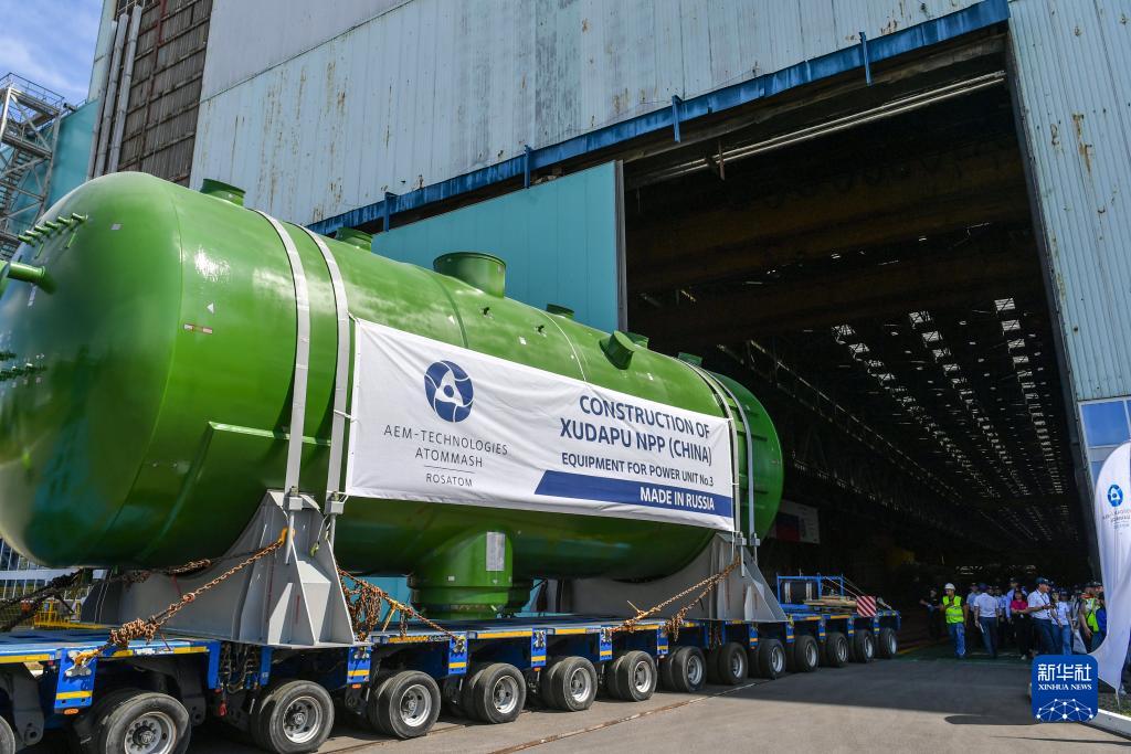 7月11日,在俄羅斯南部羅斯托夫州伏爾加頓斯克市,徐大堡核電站3號機組關鍵設備起運。