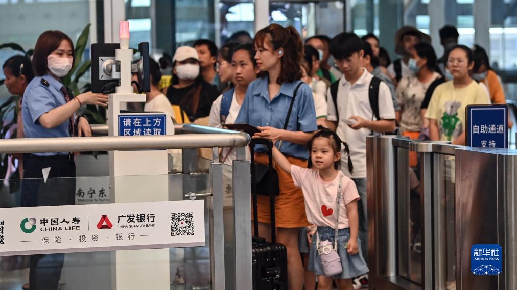 旅客在中國鐵路南寧局集團有限公司南寧東站轉乘(7月11日攝)。
