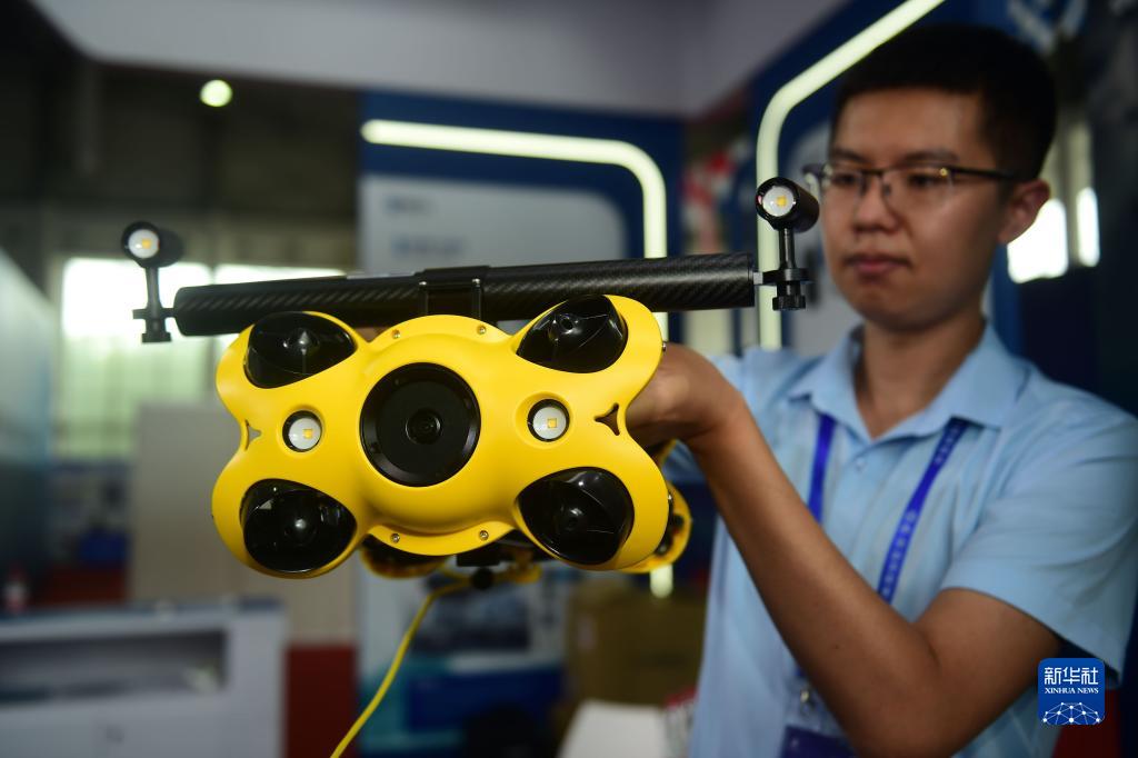 7月12日,參展單位工作人員展示用於船檢的智能水下機器人。