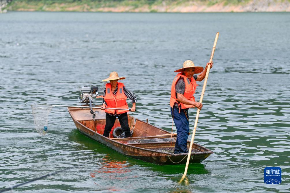 七月的烏江河谷,在夕陽西下時依然酷熱難耐。盧錫永和冉茂英駕駛小船,忙着清理前幾天因上游漲水衝下來的漂浮物。一人打撈,一人掌舵,夫妻倆分工協作,配合默契。這一幹,就是37年。