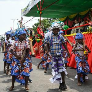 7月12日,演員在聖多美和普林西比聖多美島瓜達盧佩鎮舉行的獨立日慶典活動上表演。