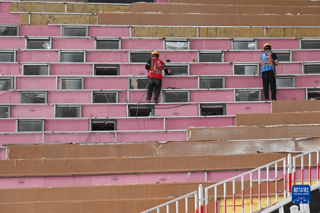 7月13日,工人在北京城市副中心圖書館項目施工現場施工。