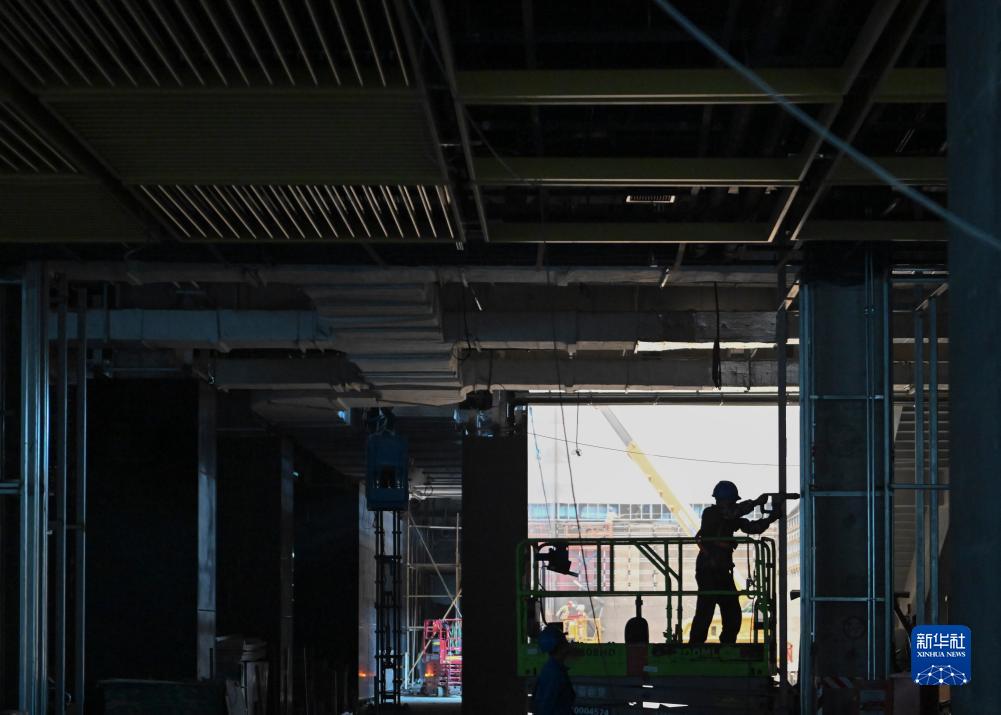7月12日,工人在北京城市副中心劇院項目施工現場施工。