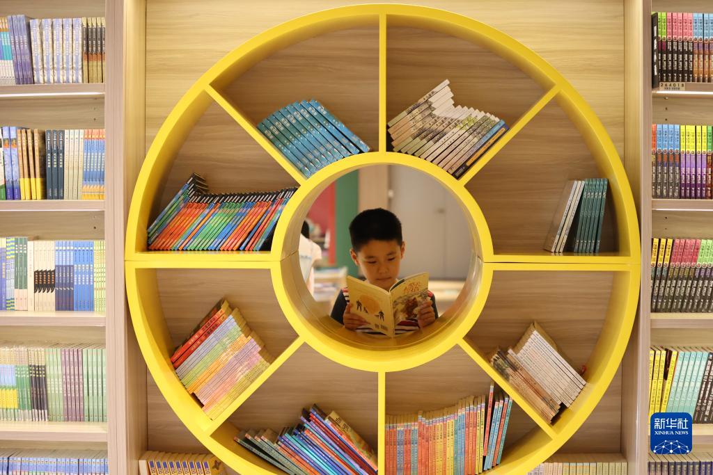 7月13日,河南省開封市一名小朋友在書店讀書。