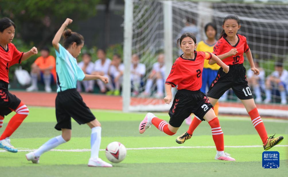 7月13日,在山東省滕州市實驗小學文化路校區,參加滕州市第七屆校園足球聯賽的孩子們在球場上拼搶。