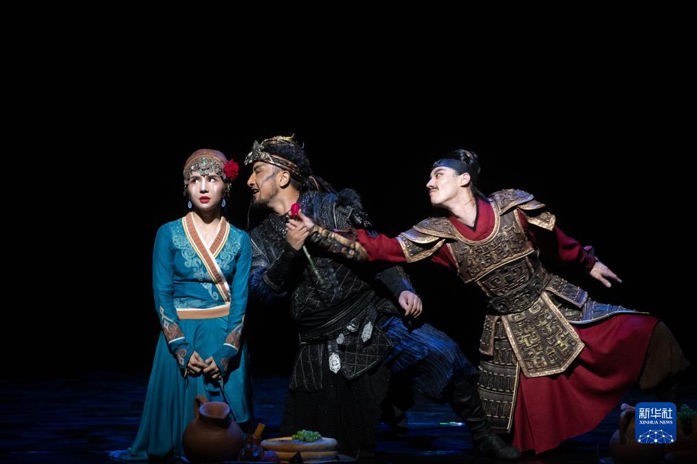 當日,舞劇《五星出東方》在武漢市湖北劇院上演。該劇的構想源於從我國新疆和田尼雅遺址出土的國家一級文物“五星出東方利中國”漢代織錦護臂。新華社發(杜子璇攝)
