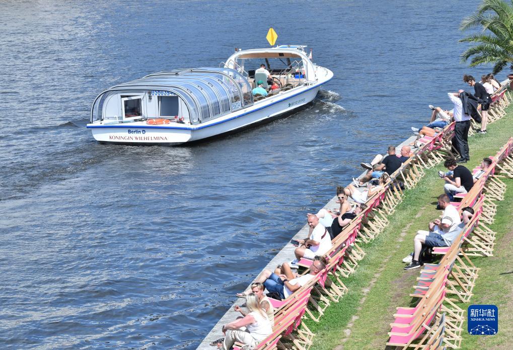 7月13日,人們在德國柏林施普雷河畔休閒。