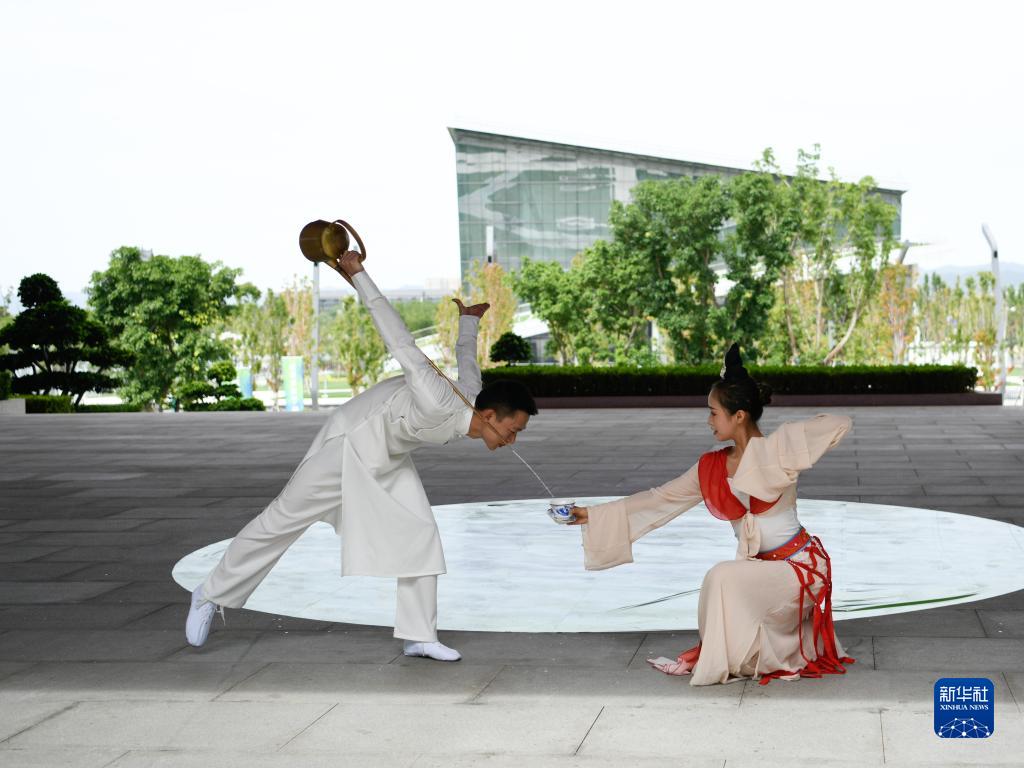 7月14日,表演者在成都大運會主媒體中心傳統文化傳播區展示傳統茶藝。