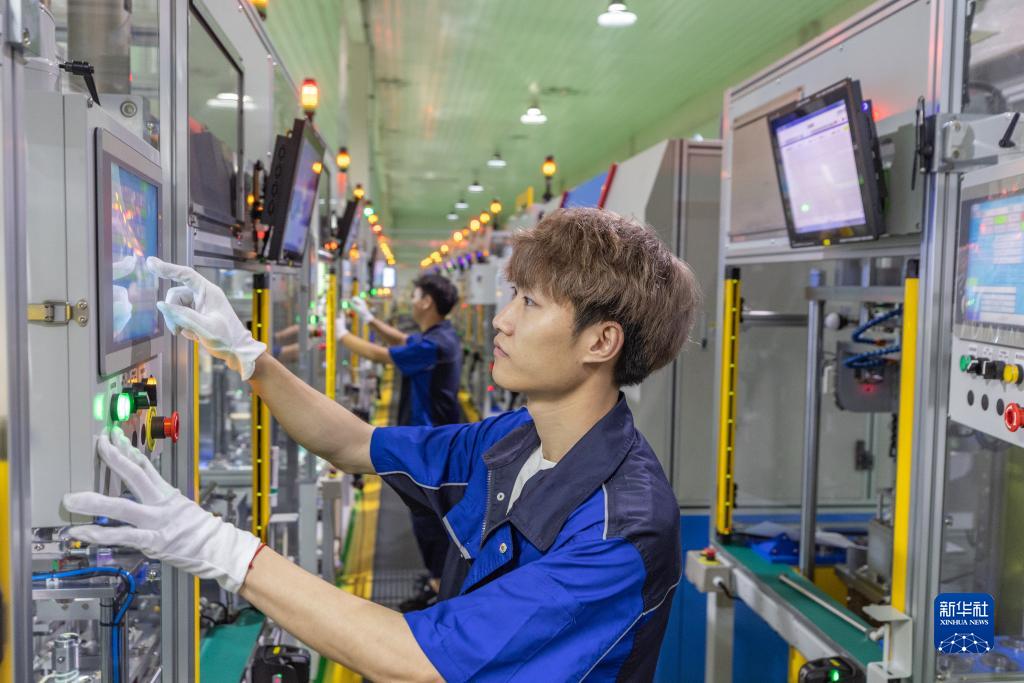 7月13日,在重慶龍潤汽車轉向器有限公司車間,工作人員在調試智能化生産設備。