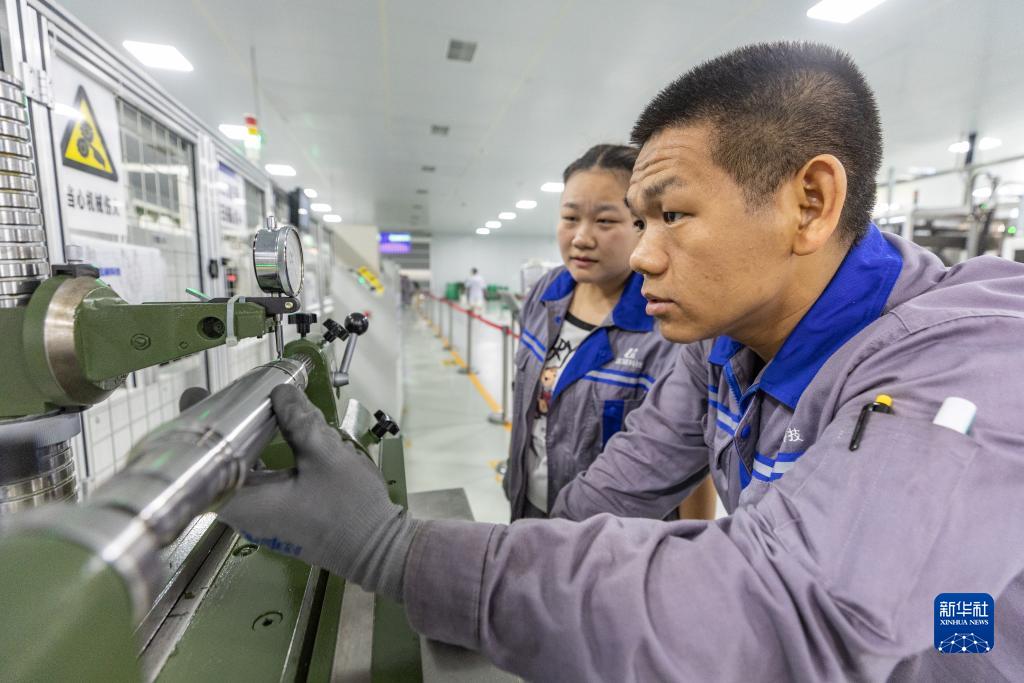 7月13日,工作人員在藍黛科技集團股份有限公司車間作業。