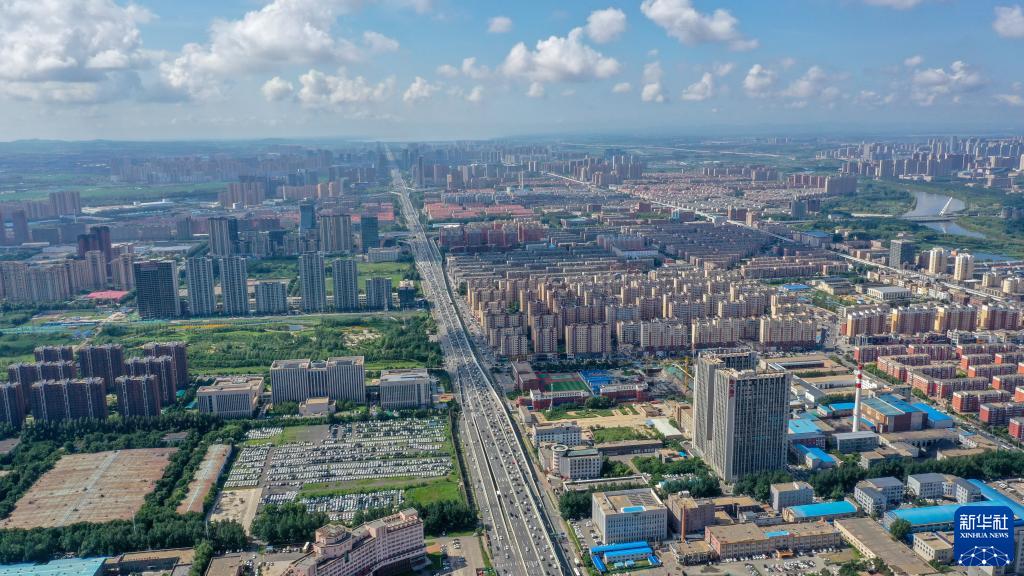 車輛行駛在長春市東部快速路(7月12日攝,無人機照片)。