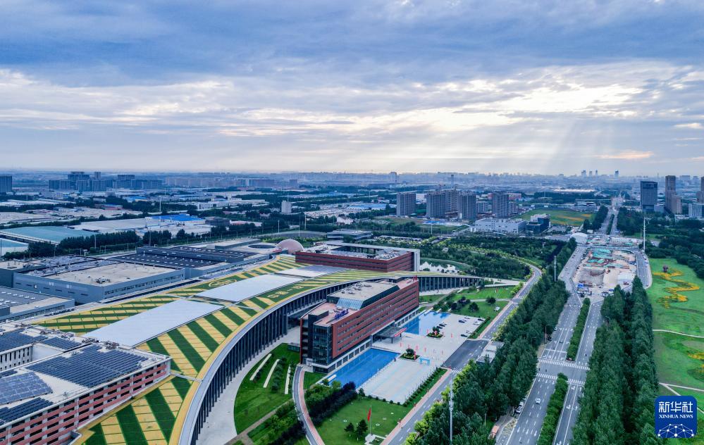 7月13日無人機拍攝的晨曦中的中國一汽總部大樓。