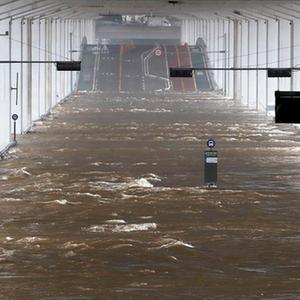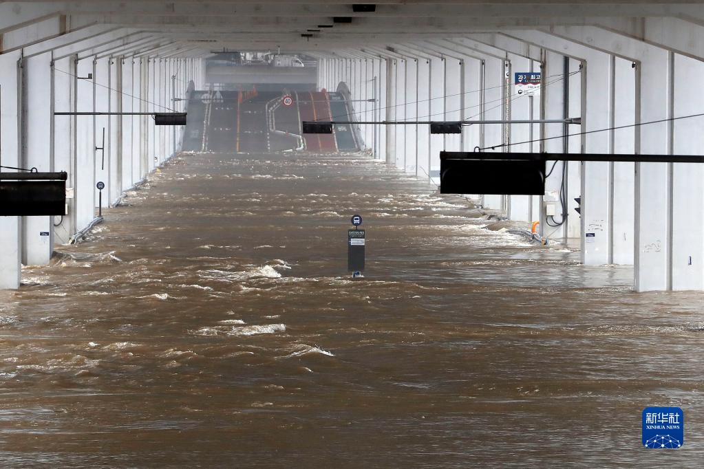 這是7月14日在韓國首爾拍攝的被水淹沒的潛水橋。