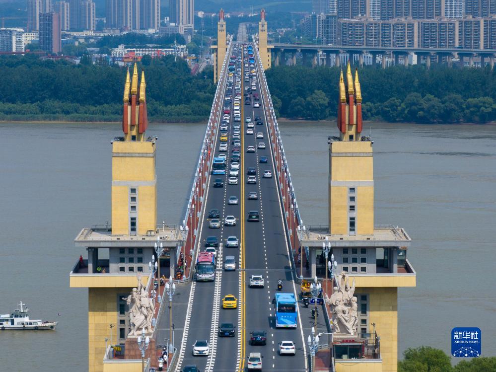 這是南京長江大橋(無人機照片,7月12日攝)。
