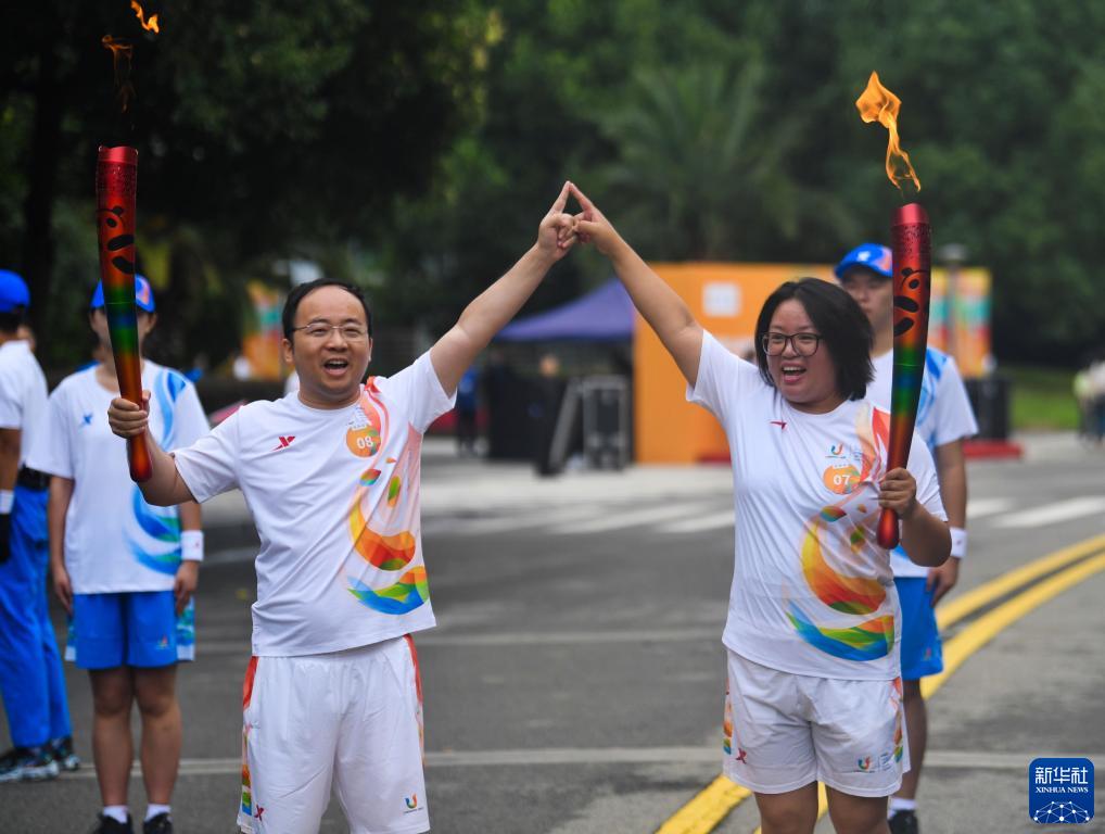 新華全媒+丨成都大運會火炬在西南財經大學(柳林校區)傳遞