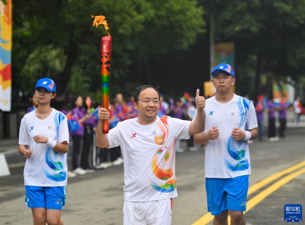 新華全媒+丨成都大運會火炬在西南財經大學(柳林校區)傳遞