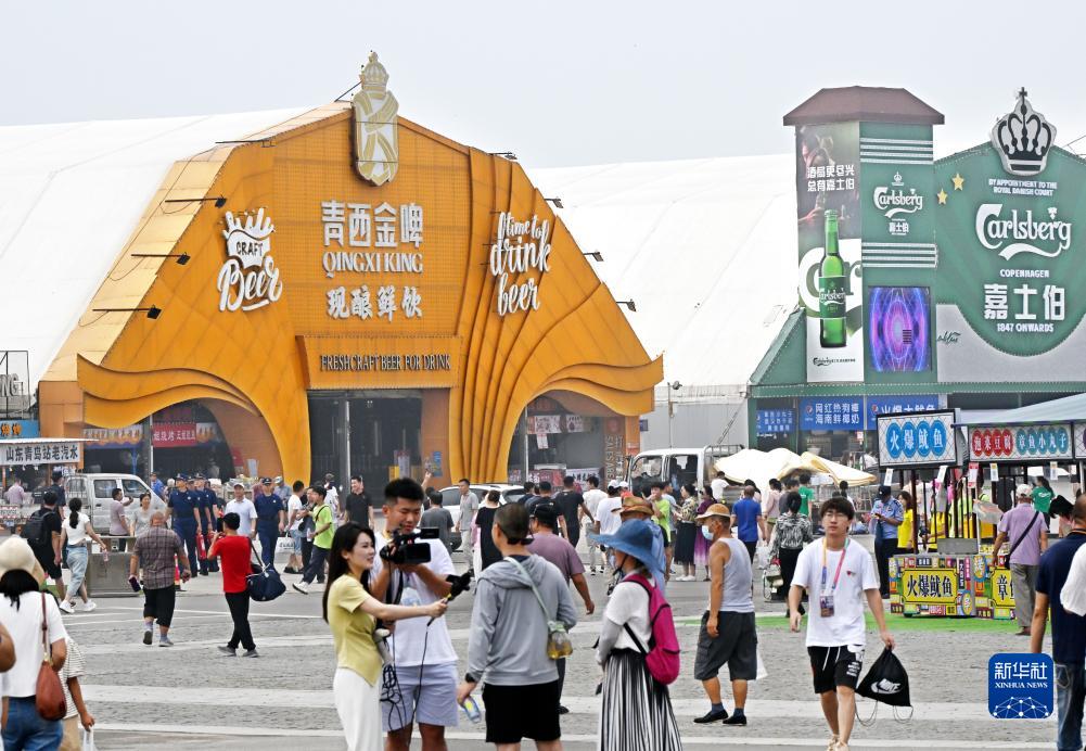 當日,第33屆青島國際啤酒節青島西海岸新區金沙灘啤酒城舉行開城儀式。據介紹,本屆啤酒節持續至8月6日。來自五湖四海的游客可在此品鑒40多個國家和地區2000餘款啤酒,並暢享音樂演出、藝術巡游、體育競演等300余場活動。