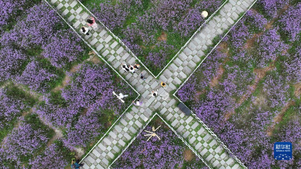 7月14日,游客在貴州省貴陽市花溪區石門花海景區游覽(無人機照片)。新華社記者 楊楹 攝