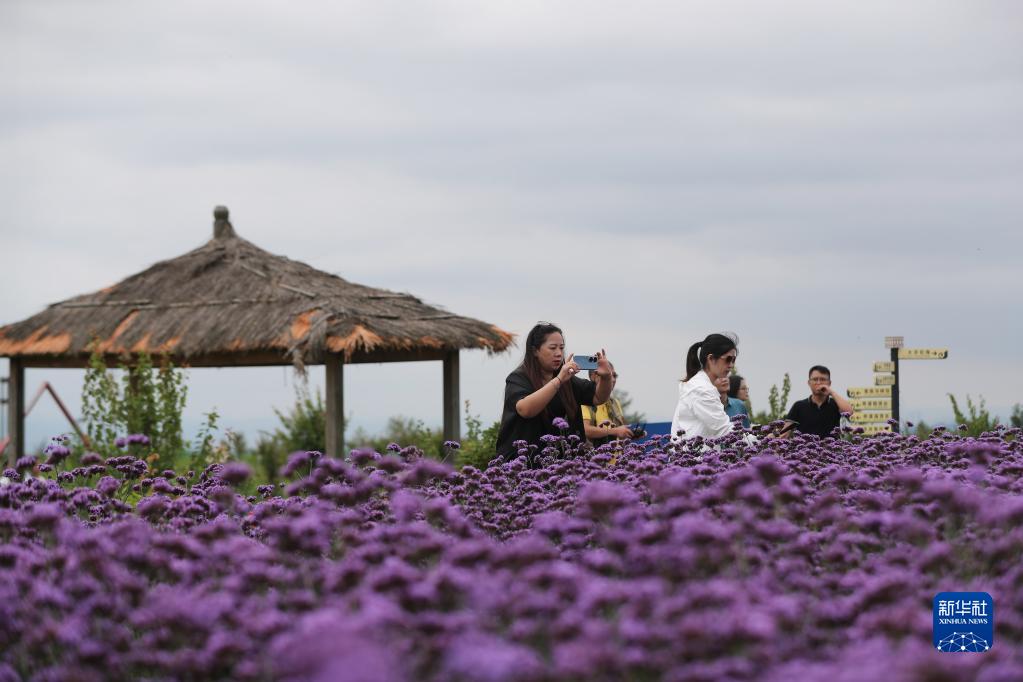 7月14日,游客在貴州省貴陽市花溪區石門花海景區賞花游玩。新華社發(袁福洪 攝)