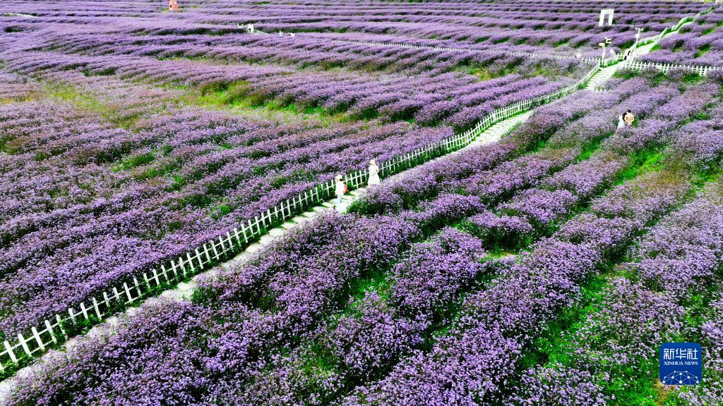 7月14日,游客在貴州省貴陽市花溪區石門花海景區賞花游玩(無人機照片)。新華社發(袁福洪 攝)