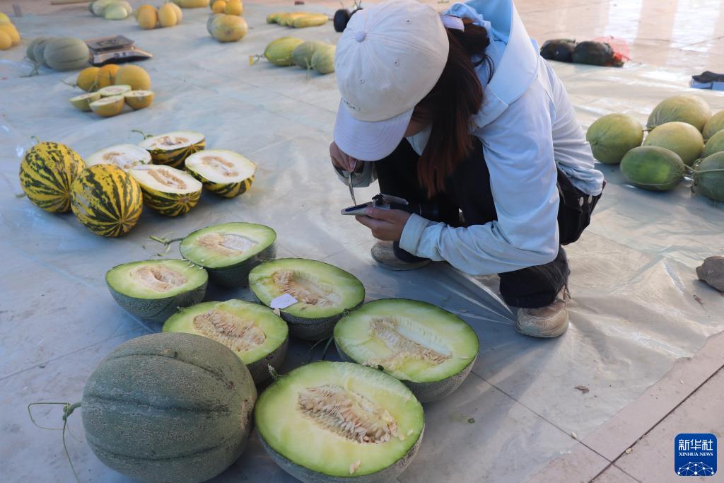 農業農村部組織開展的第三次全國農作物種質資源普查與收集行動正有序推進。國家西瓜甜瓜種質資源中期庫(鄭州)主要負責西瓜甜瓜資源的編目入庫工作。今年,該庫在位於新疆的哈密國家農業科技園區的試驗地開展普查資源的繁殖更新與數據採集工作,種植來自全國31個省(區、市)匯交的西瓜甜瓜1200余份,其中,甜瓜950份,西瓜320份。