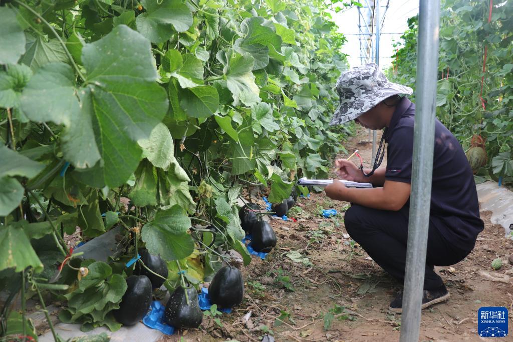 7月14日,科研人員在進行甜瓜資源田間數據調查。