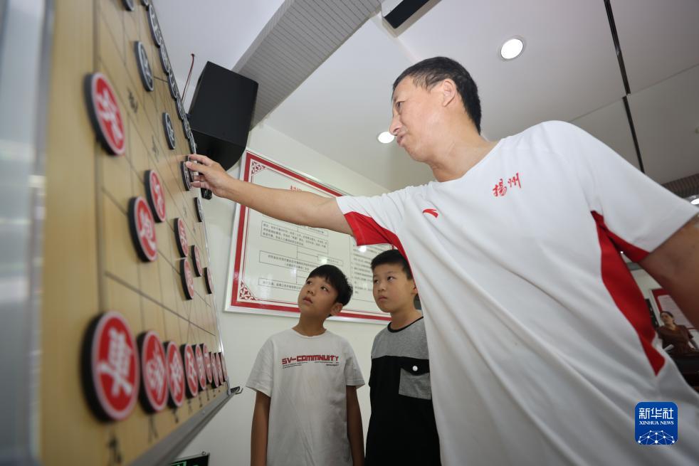 7月14日,孩子們在江蘇省揚州市江都區仙女鎮南吳社區假日學堂學習象棋。