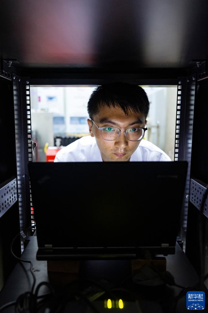 7月3日,在中國錦屏地下實驗室,實驗組成員景明坤在檢查實驗數據。新華社記者 沈伯韓 攝