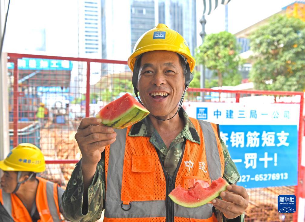 隨着三伏天的到來,廣西南寧市良慶區五象大道中建三局一公司南寧中銀金融中心項目部採取發放解暑藥、提供降暑茶、免費供應瓜果、工地噴淋降溫等措施,為一線建築工人消暑降溫,在保證安全的情況下確保工程進度。