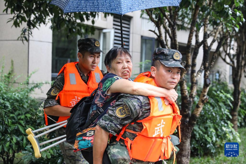 7月14日,在重慶市萬州區江南新區,武警重慶總隊執勤第三支隊官兵在轉移群眾。