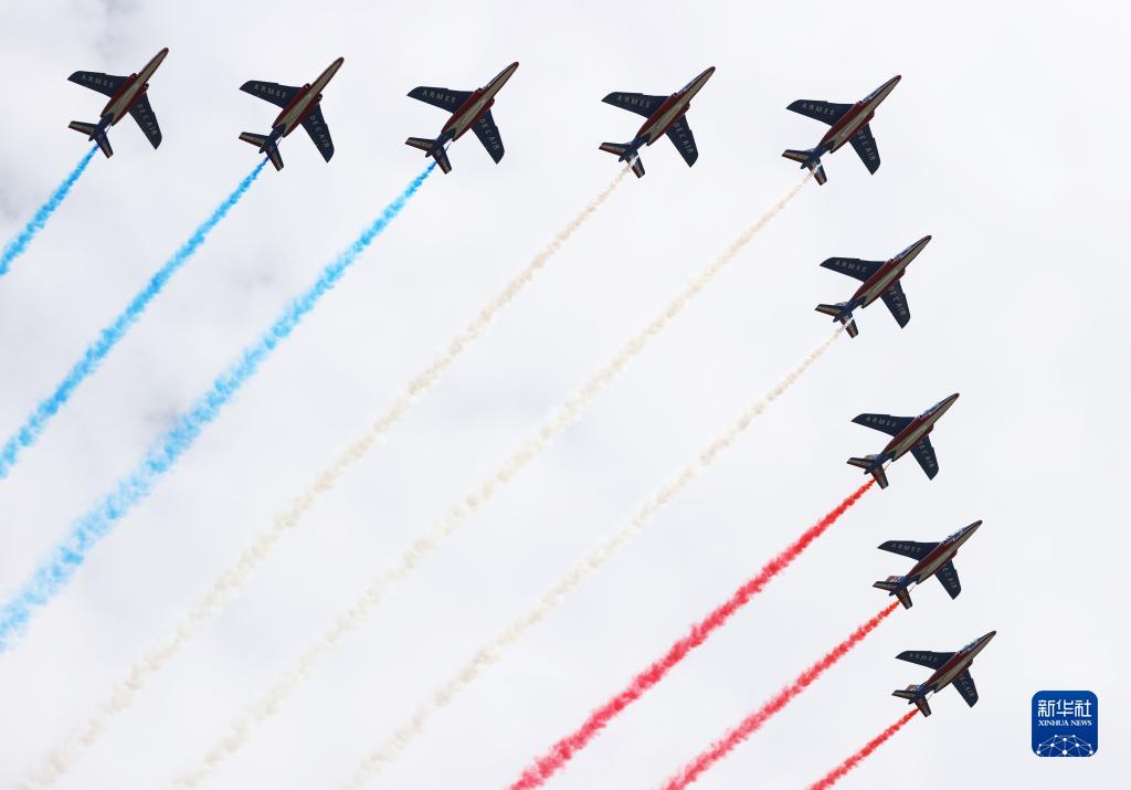 7月14日,“法蘭西巡邏兵飛行表演隊”參加在法國巴黎舉行的國慶閱兵式。新華社記者 高靜 攝