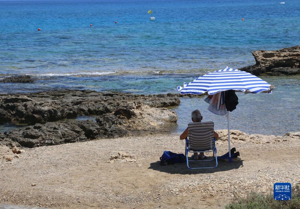 7月14日,一名老人在塞浦路斯普羅塔拉斯的一處海灘消暑。新華社記者 郭明芳 攝