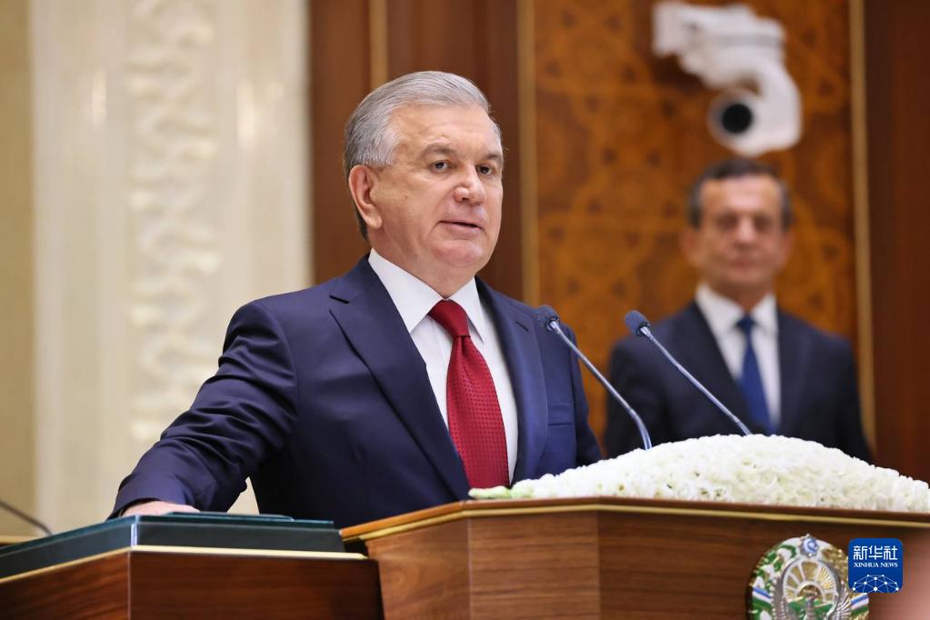 烏茲別克斯坦當選總統米爾濟約耶夫14日在烏最高會議(議會)宣誓就職。新華社發(烏茲別克斯坦外交部供圖)