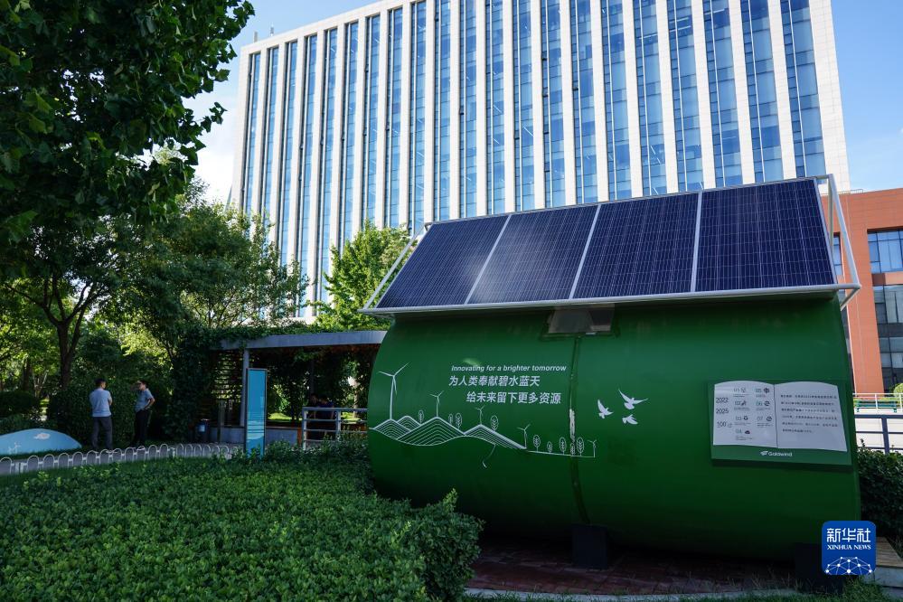 7月14日拍攝的園區休息室屋頂的光伏設備。