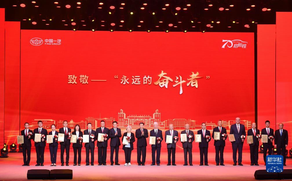 7月15日,中國一汽成立70周年慶祝大會頒發“永遠的奮鬥者”致敬信和中國一汽成立70周年紀念章。
