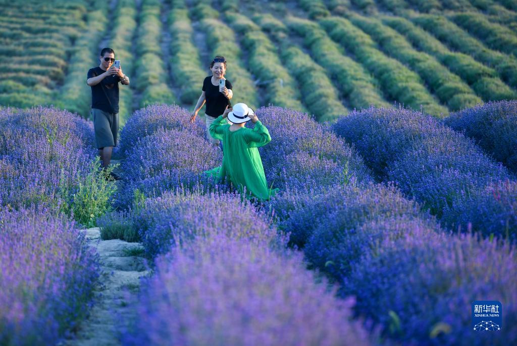 夏日時節,新疆伊犁哈薩克自治州霍城縣蘆草溝鎮四宮村的萬畝薰衣草花海漸次開放,吸引眾多游客前來觀賞。