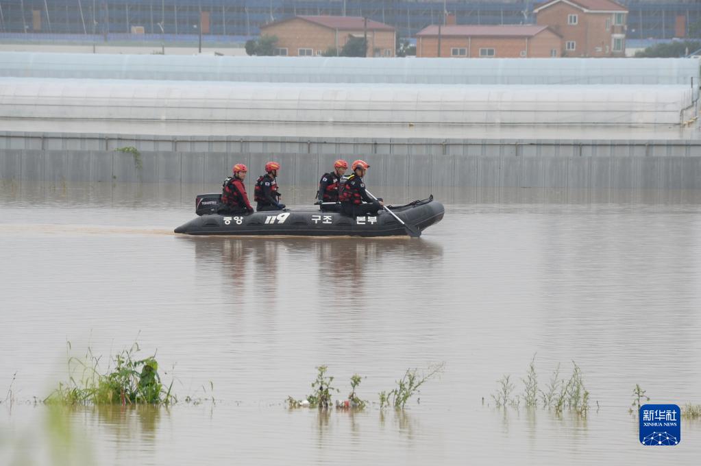 7月15日,在韓國忠清北道清州市,警察和消防人員進行搜救工作。