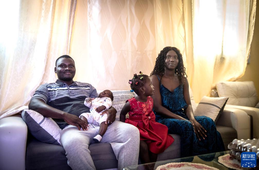 5月13日,蘇信一家在塞內加爾捷斯的家中合影。新華社記者 李亞輝 攝