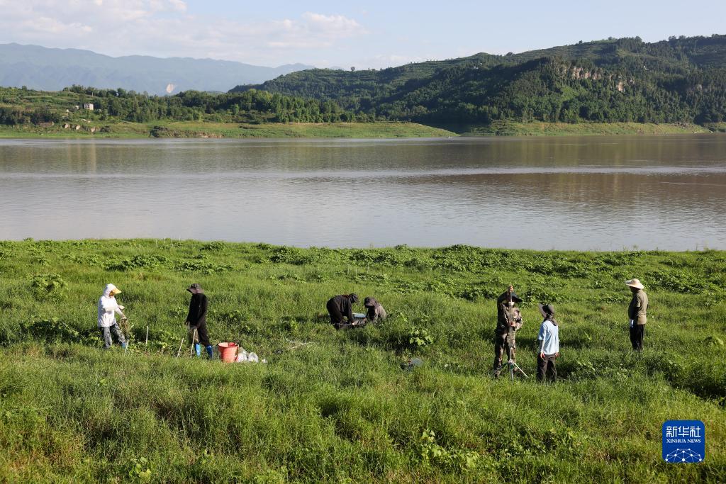 在中國科學院三峽庫區水土保持與環境研究站,中國科學院成都山地所科研人員在庫區消落帶上開展相關監測(7月5日攝)。