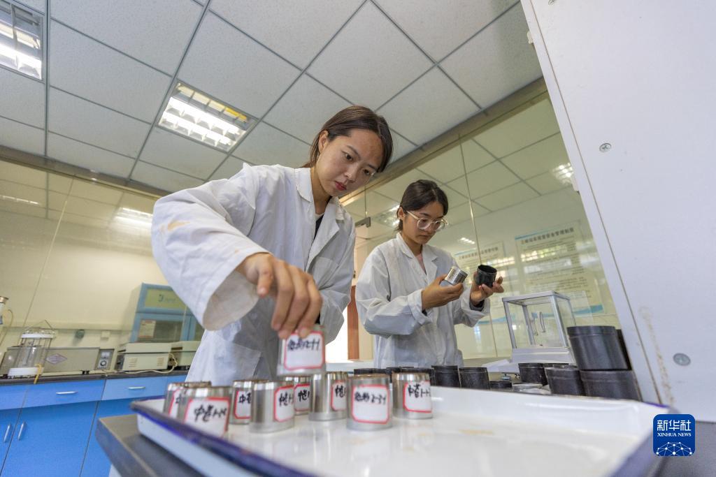 在中國科學院三峽庫區水土保持與環境研究站,中國科學院成都山地所的科研人員在進行土壤孔隙度測定實(7月5日攝)。
