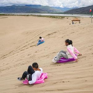 時值暑期旅游旺季,位於西藏山南市扎囊縣桑耶鎮的扎囊沙漠公園以獨特的高原沙漠景觀和豐富的游樂項目吸引游客前來游玩。
