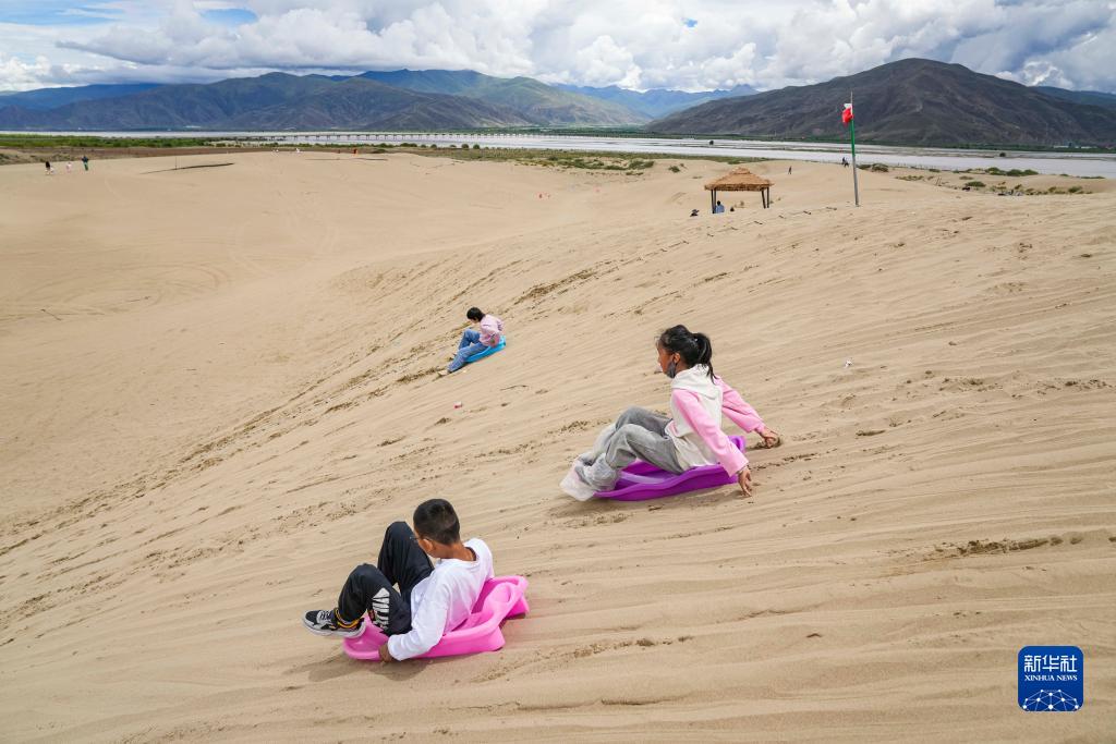 時值暑期旅游旺季,位於西藏山南市扎囊縣桑耶鎮的扎囊沙漠公園以獨特的高原沙漠景觀和豐富的游樂項目吸引游客前來游玩。