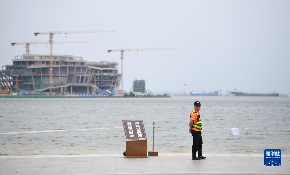 7月17日,在廣東湛江金沙灣海濱浴場,保安在警戒線執勤。